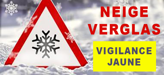 VIGILANCE METEO JAUNE A SURVEILLER NEIGE-VERGLAS du Vendredi 09 janvier à 18h jusqu'au samedi 10 janvier à 23h59