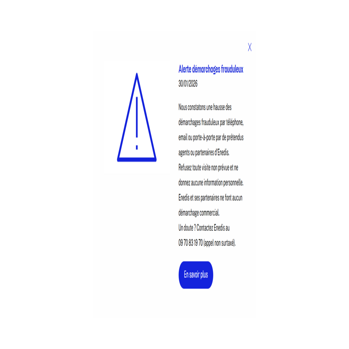 Infos ENEDIS : Mise en garde sur les démarchages frauduleux en leur nom et leurs partenaires.